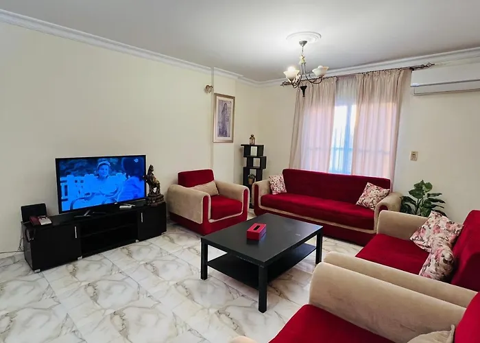 A fully-fitted kitchen is ideal for preparing home-cooked meals. The property is 45 km from El Giza train station.